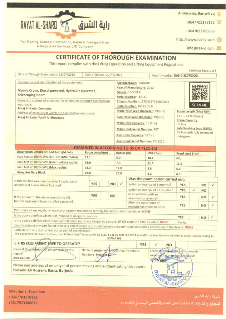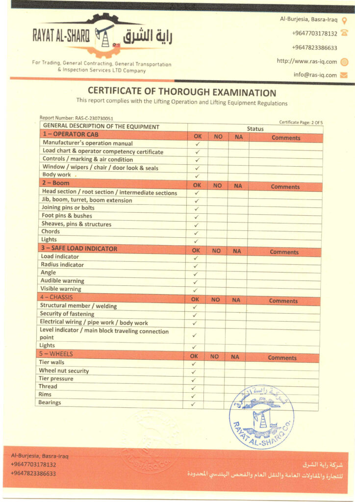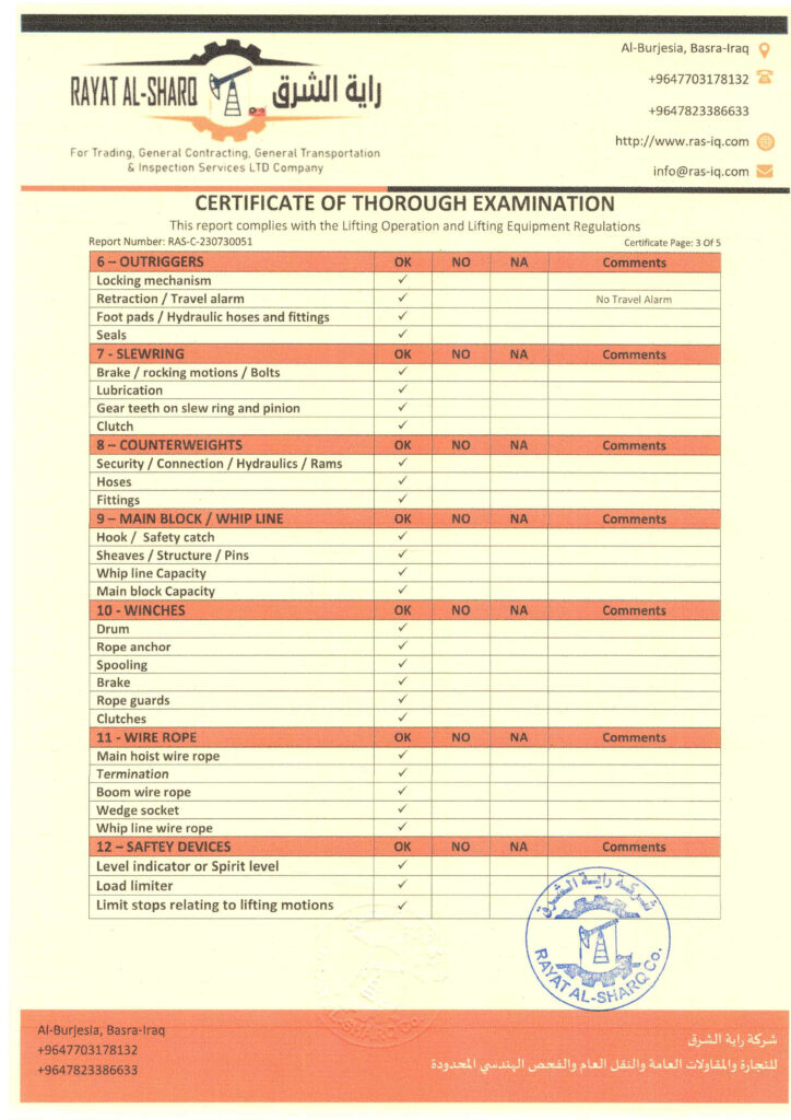 LIFTING INSPECTION