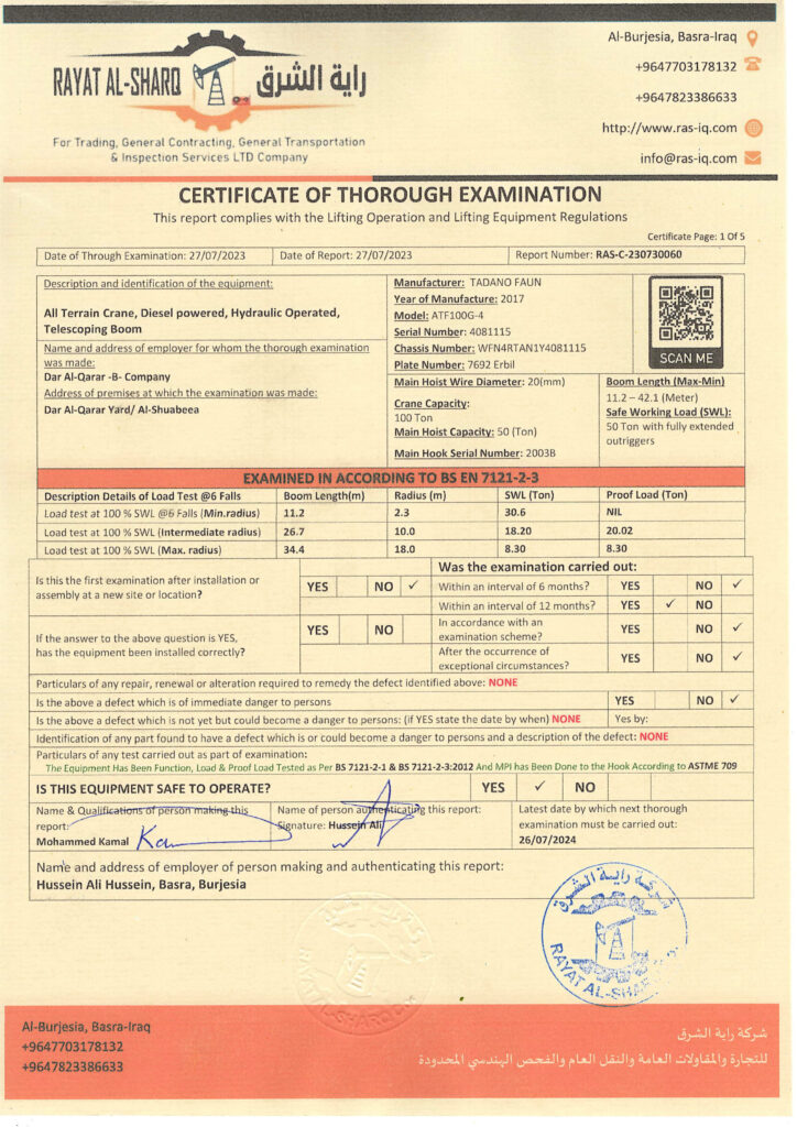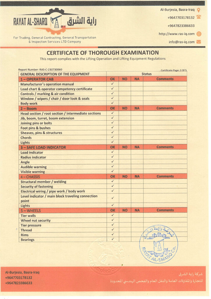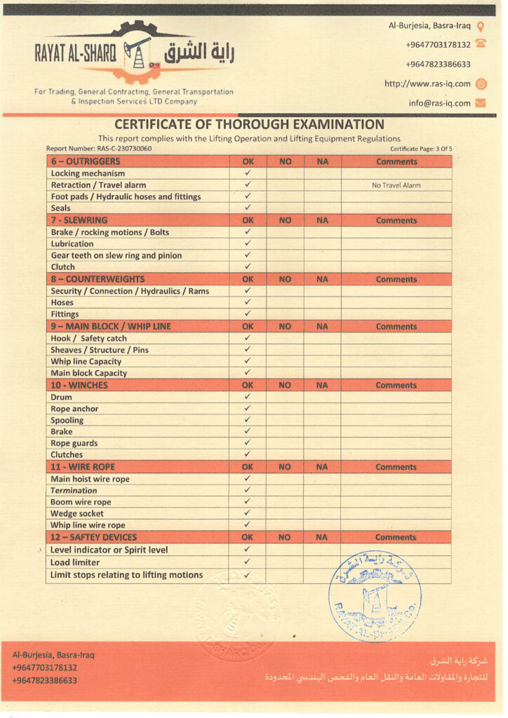 LIFTING INSPECTION