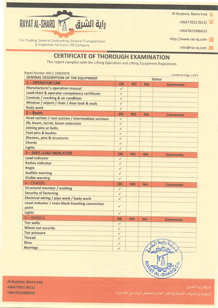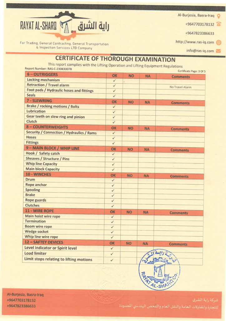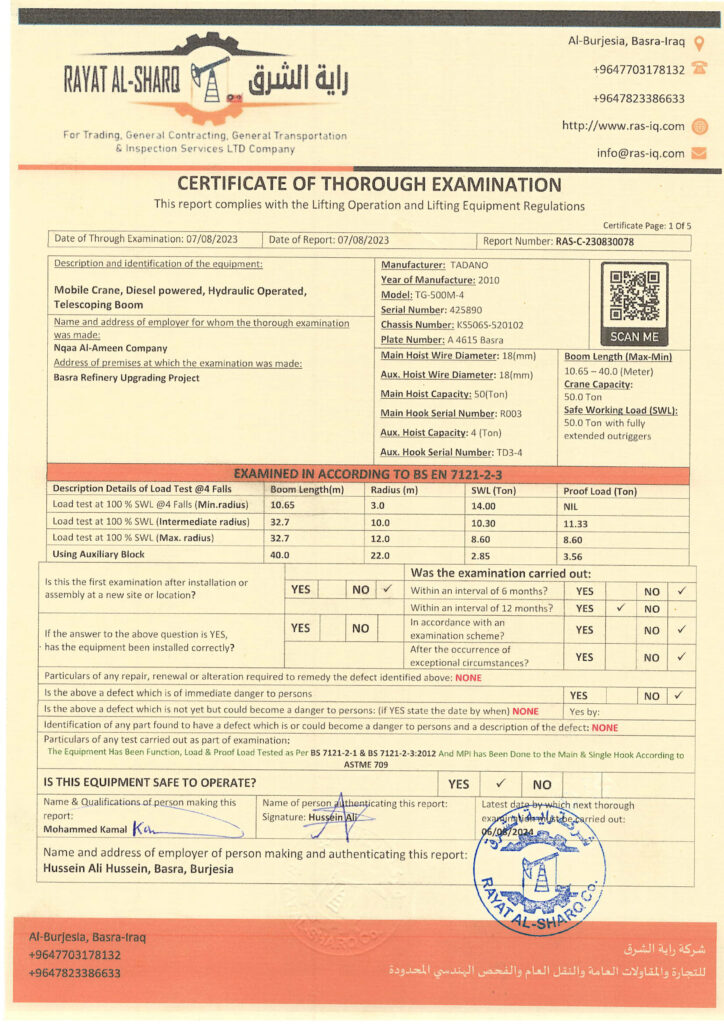 LIFTING INSPECTION