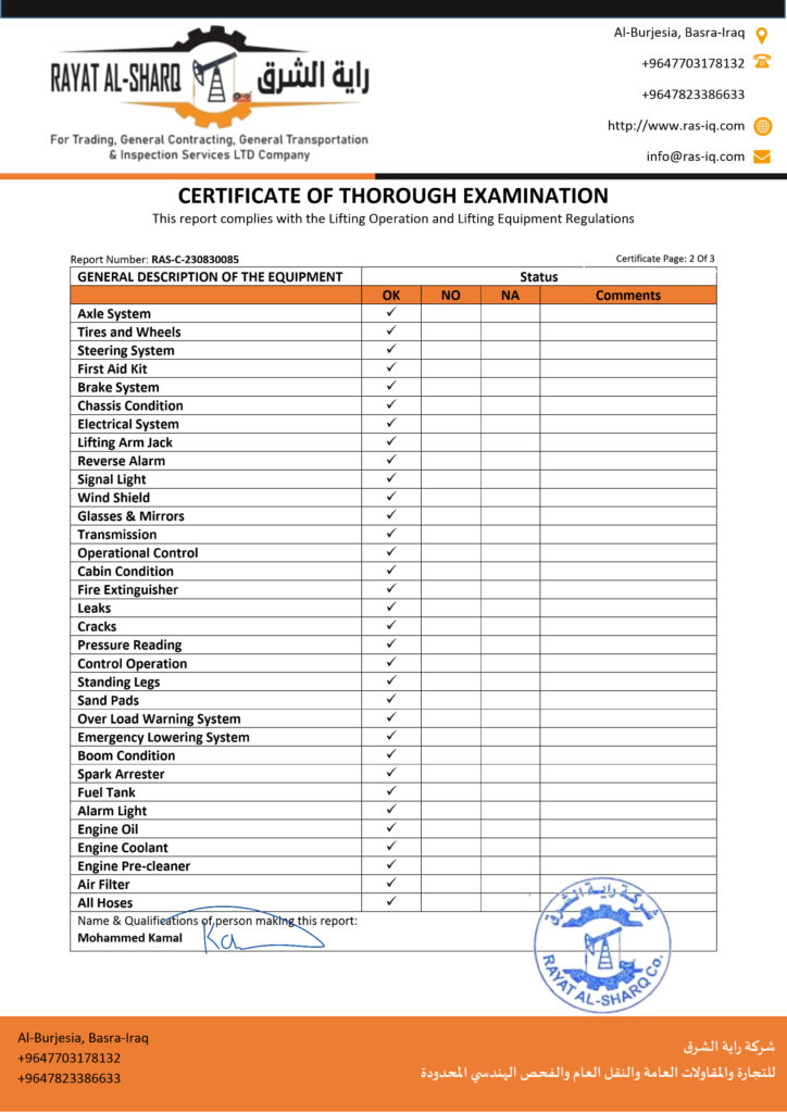 LIFTING INSPECTION