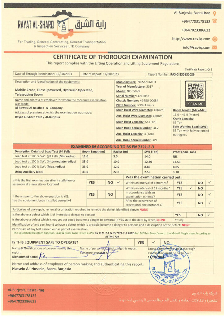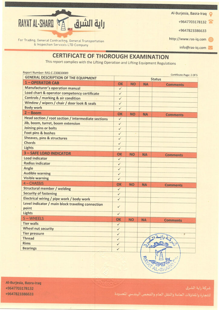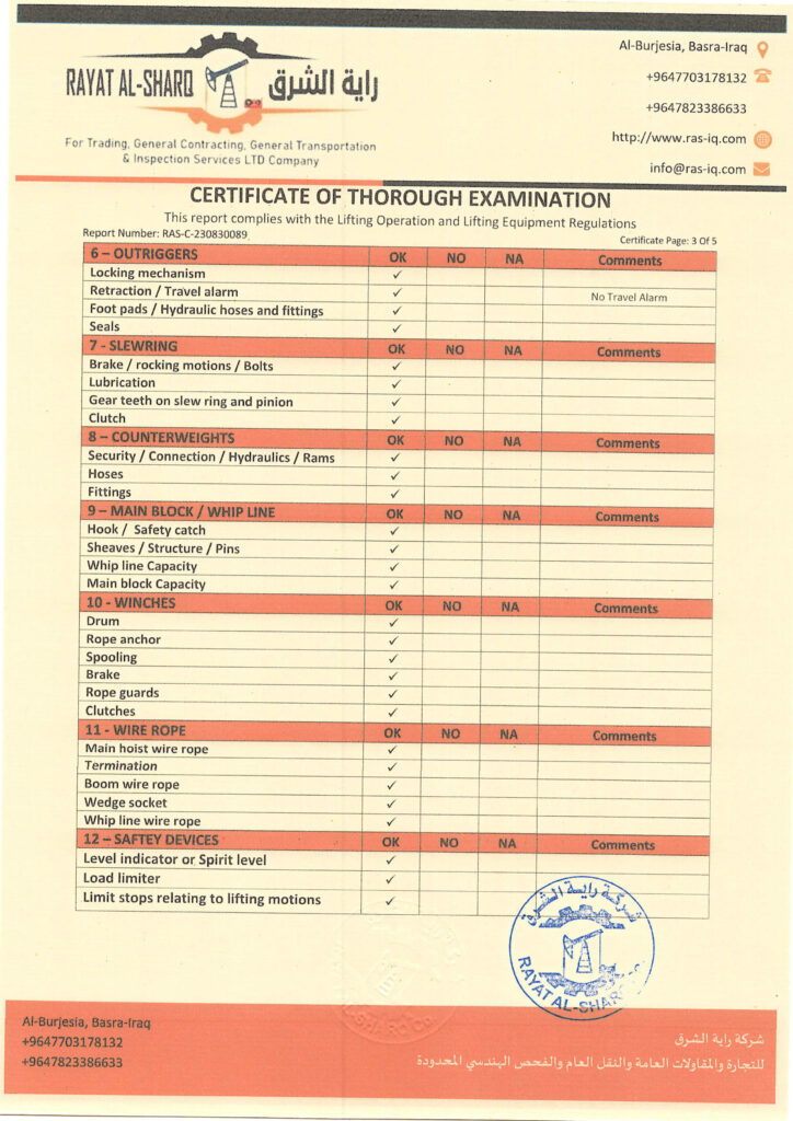 LIFTING INSPECTION