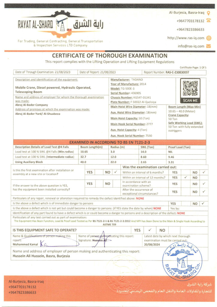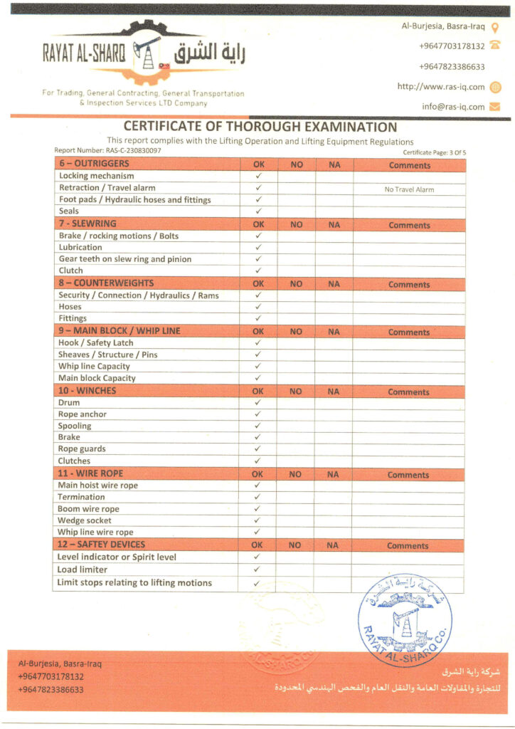 LIFTING INSPECTION