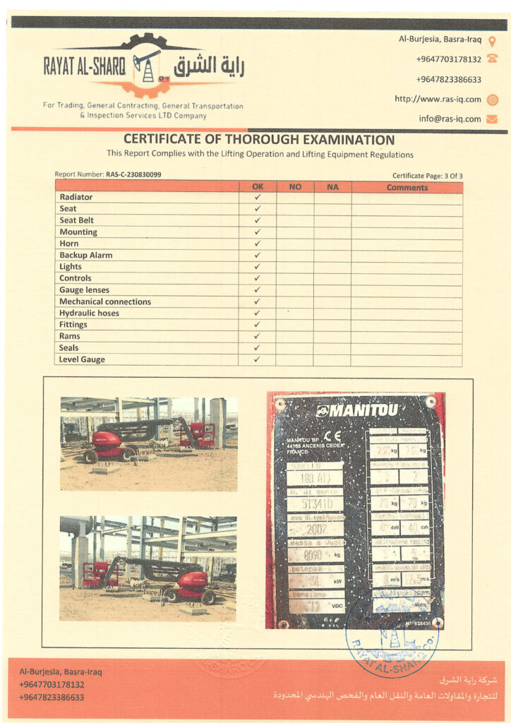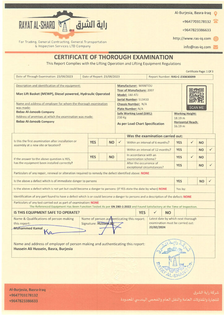 LIFTING INSPECTION