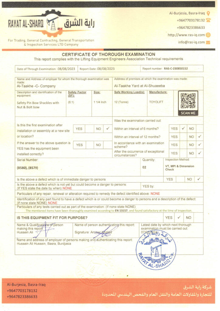 LIFTING INSPECTION
