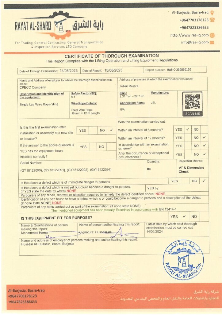 LIFTING INSPECTION