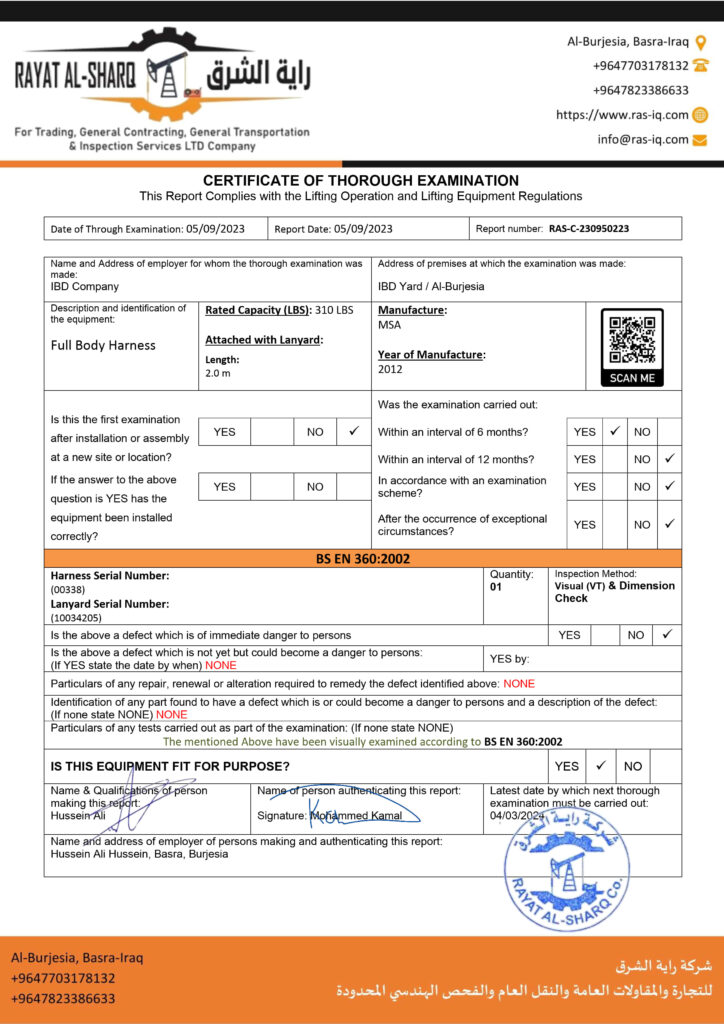 LIFTING INSPECTION