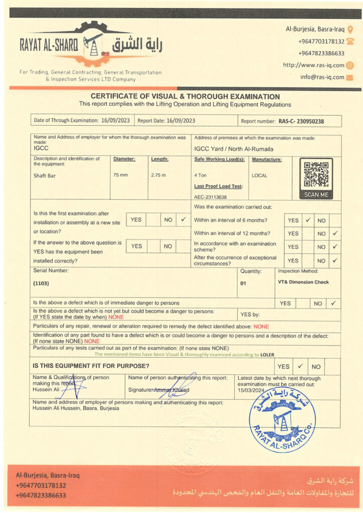 LIFTING INSPECTION