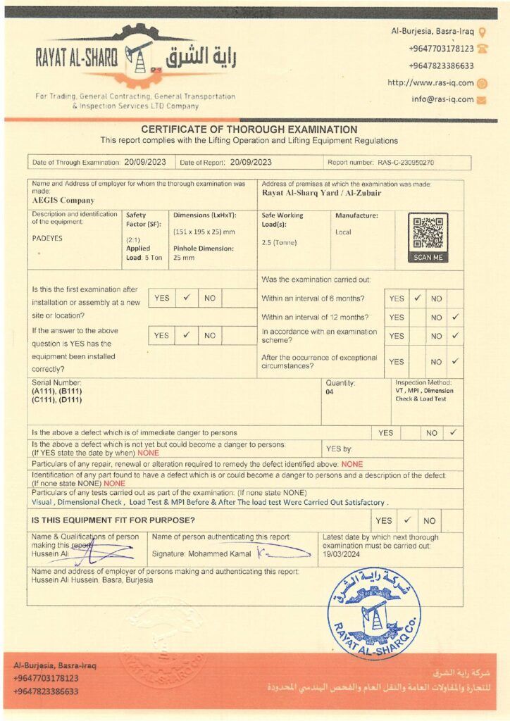 LIFTING INSPECTION