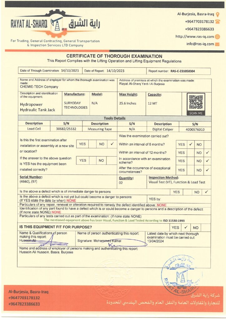LIFTING INSPECTION
