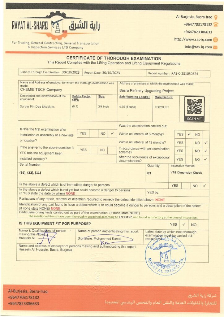 LIFTING INSPECTION