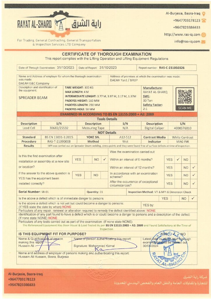 LIFTING INSPECTION