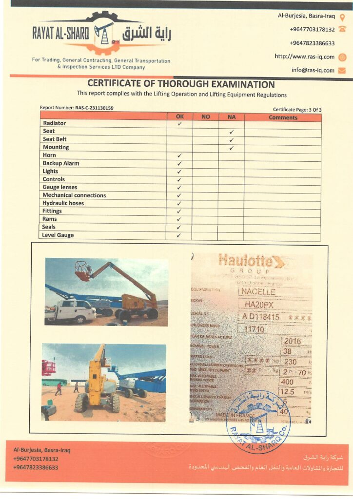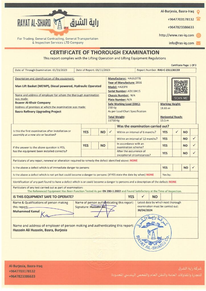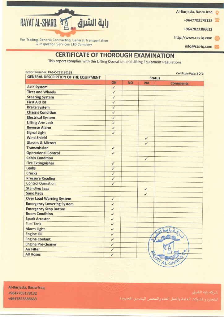 LIFTING INSPECTION