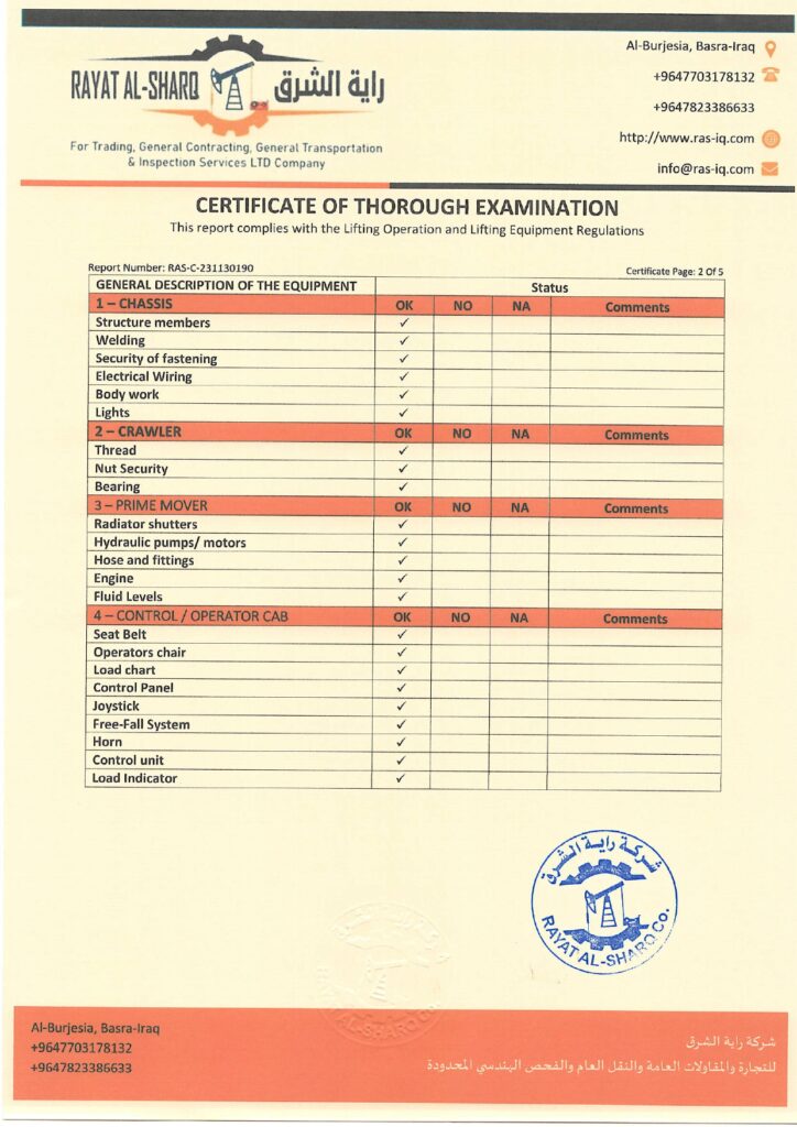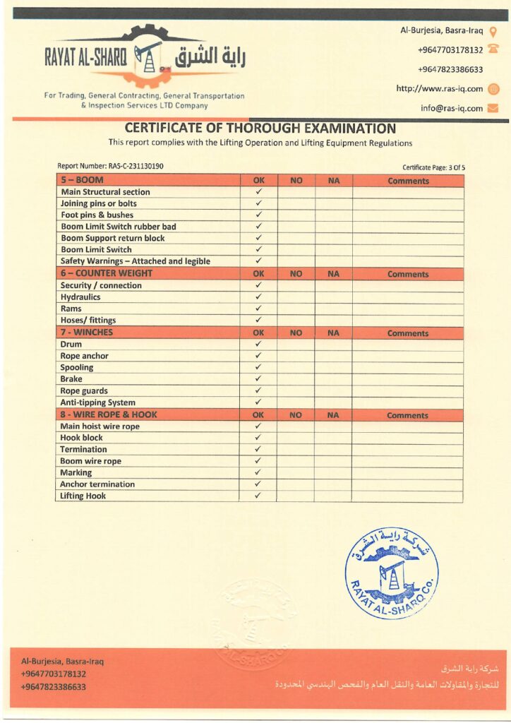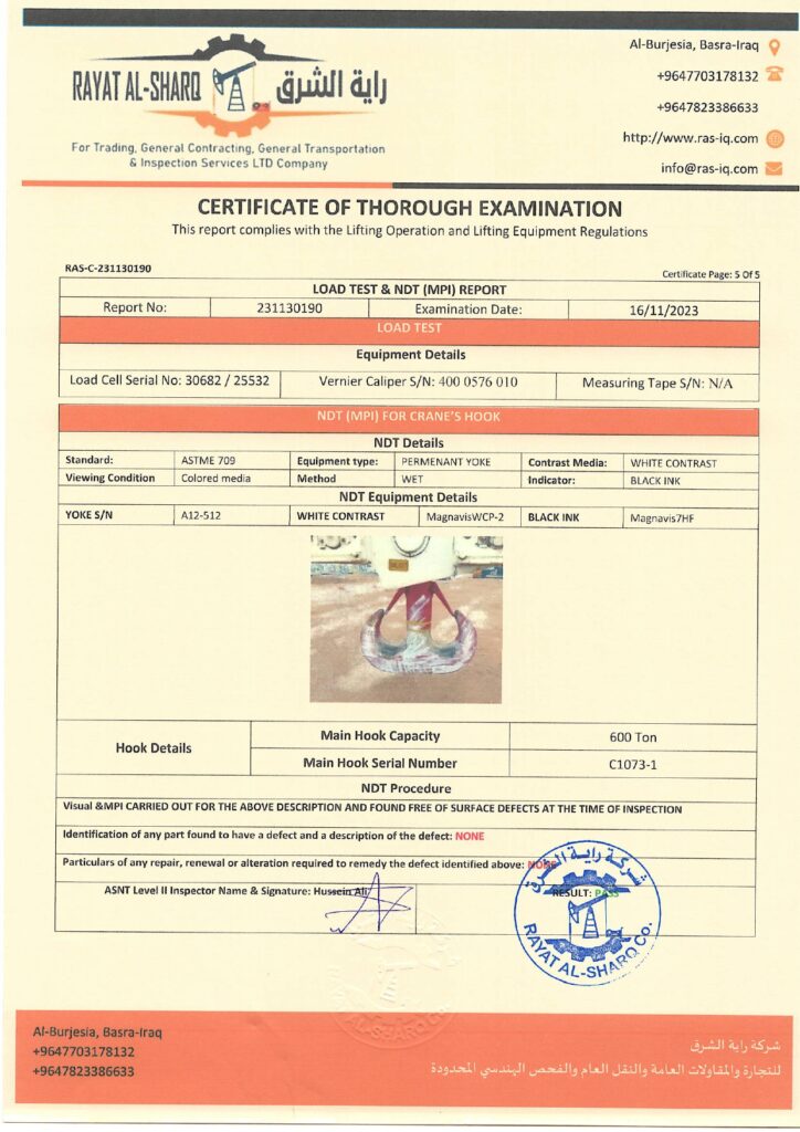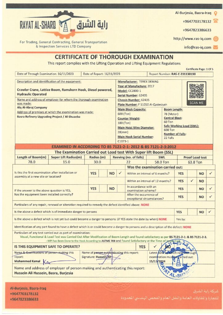 LIFTING INSPECTION