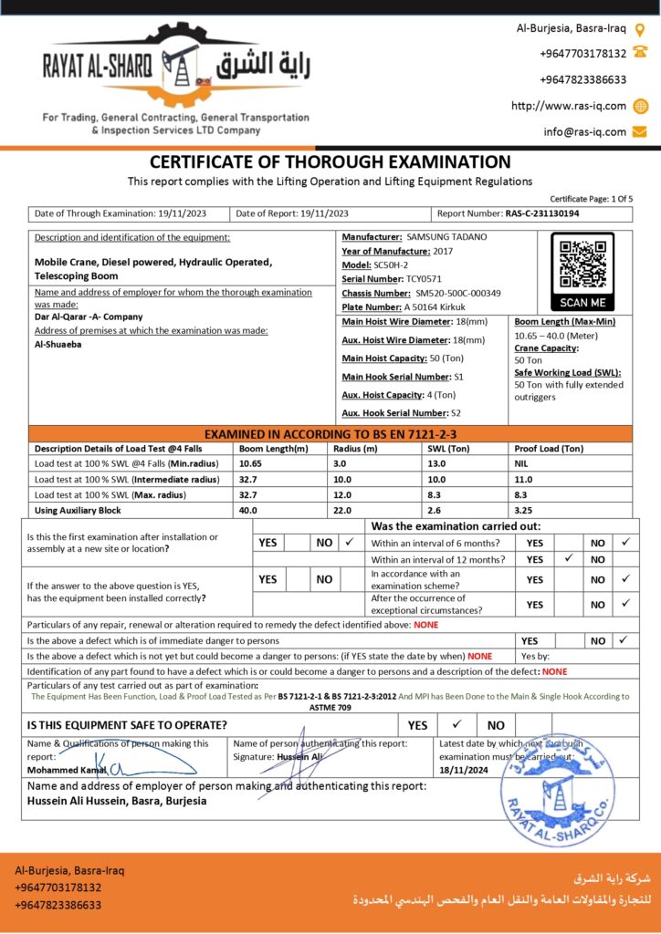 LIFTING INSPECTION