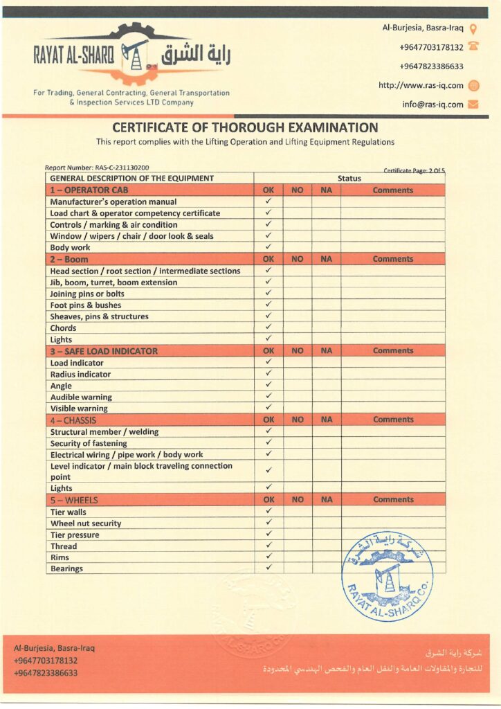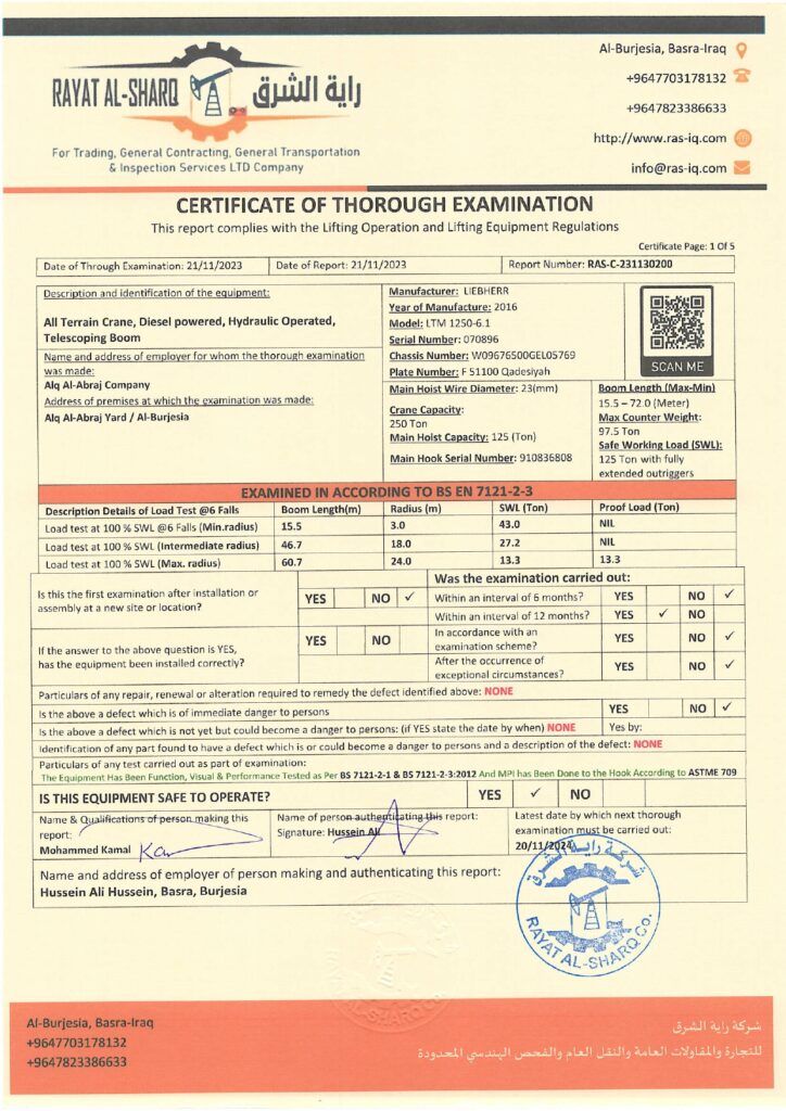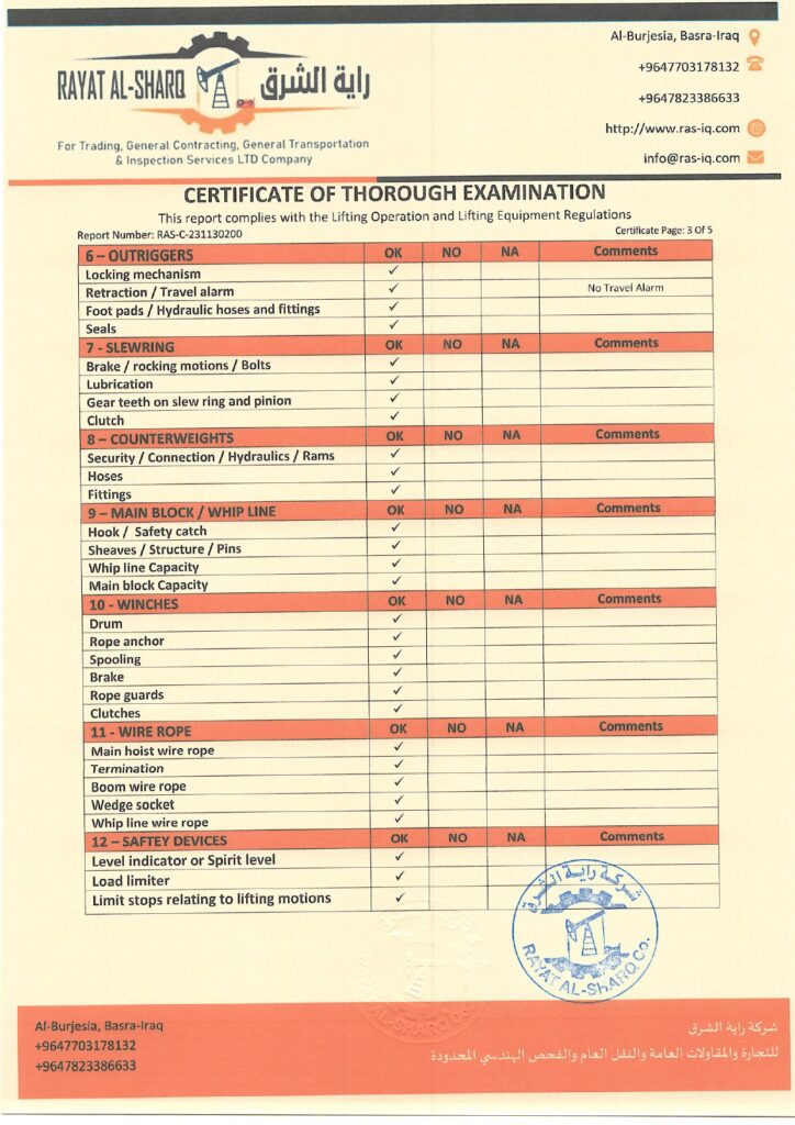 LIFTING INSPECTION