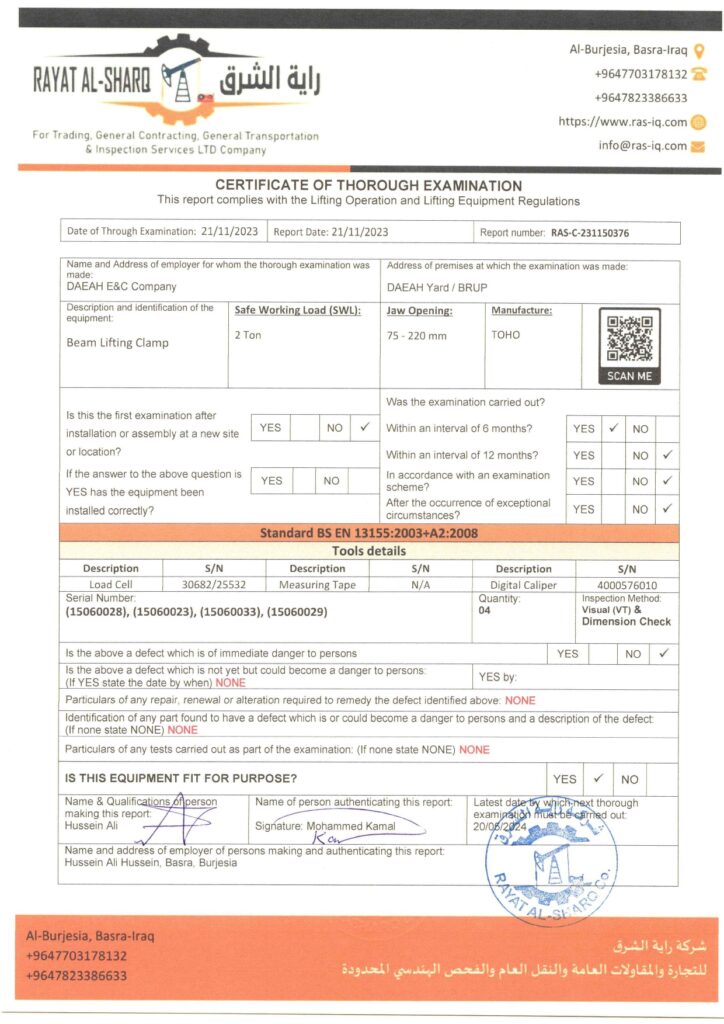 LIFTING INSPECTION
