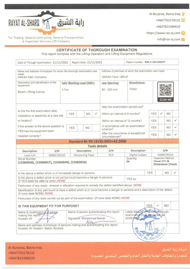 LIFTING INSPECTION