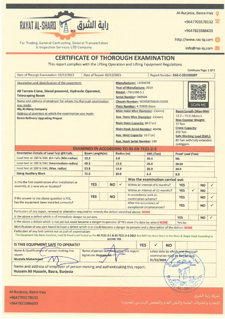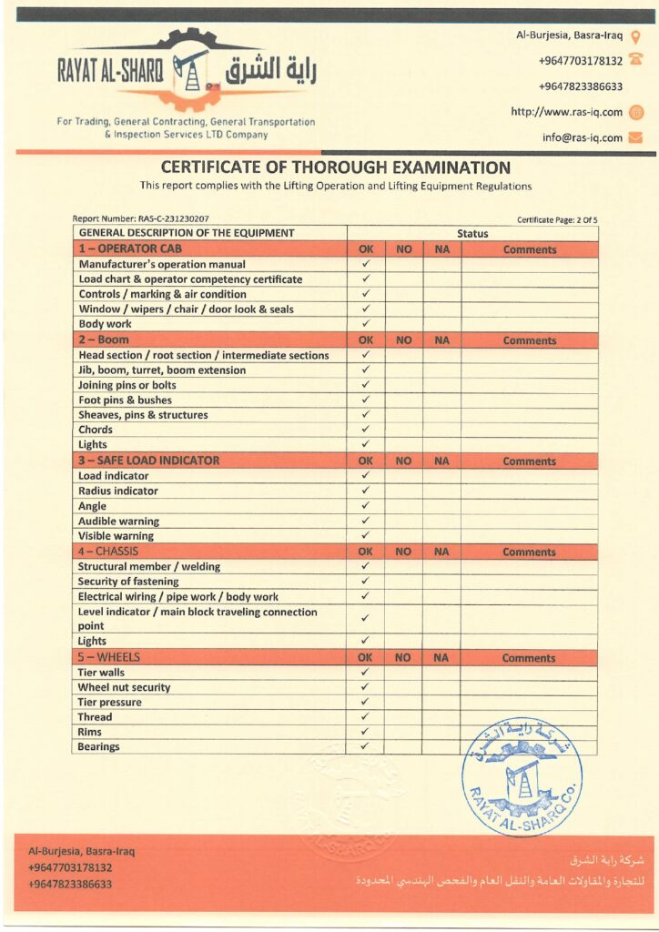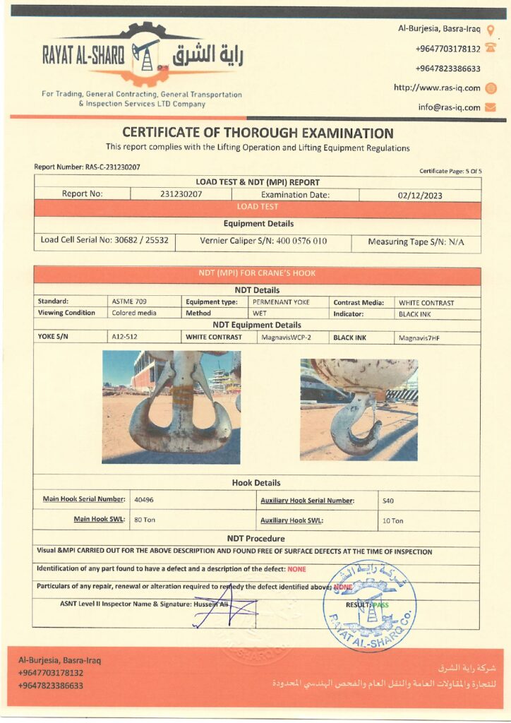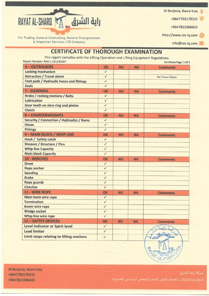 LIFTING INSPECTION