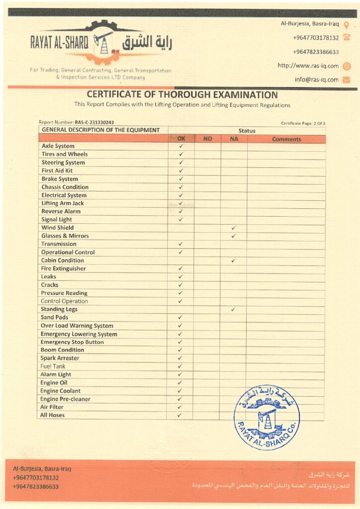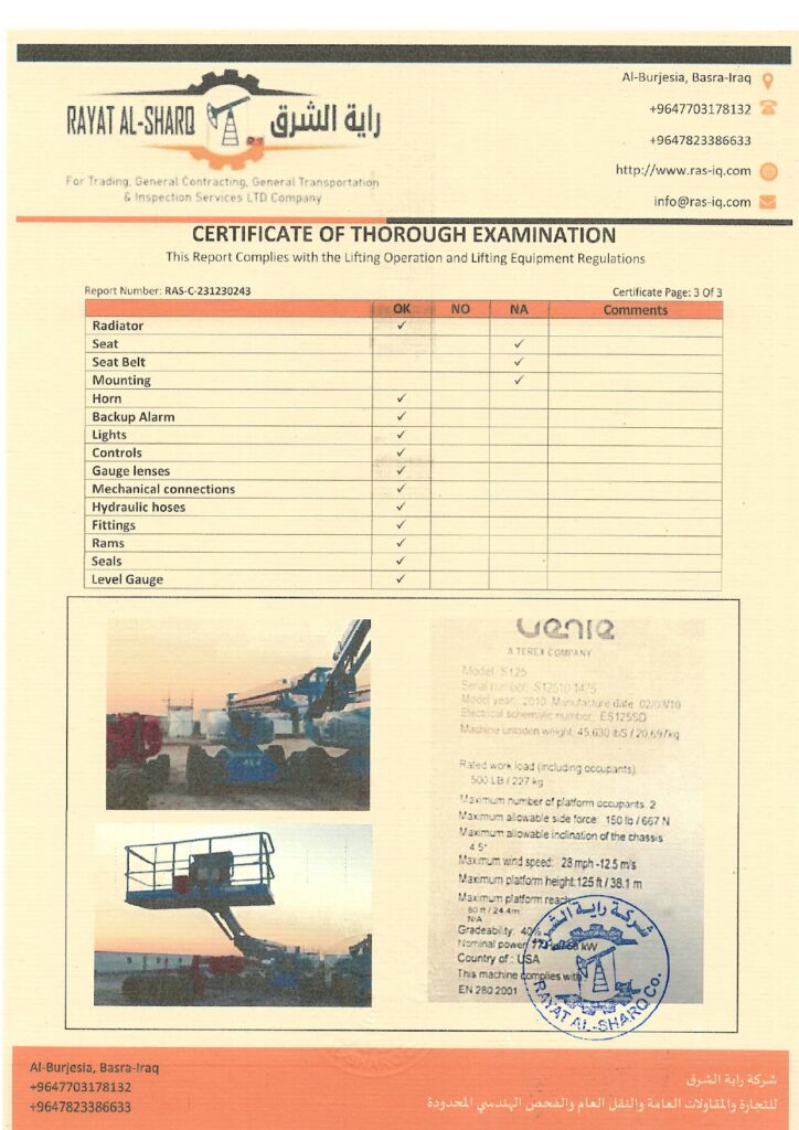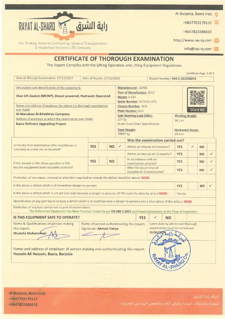 LIFTING INSPECTION