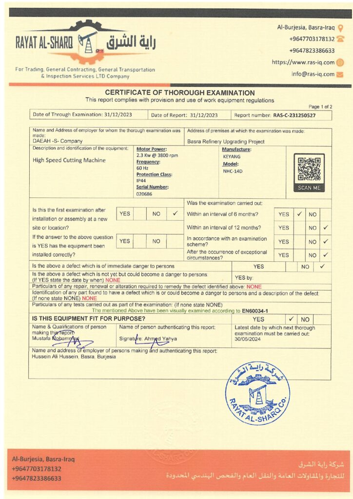 LIFTING INSPECTION