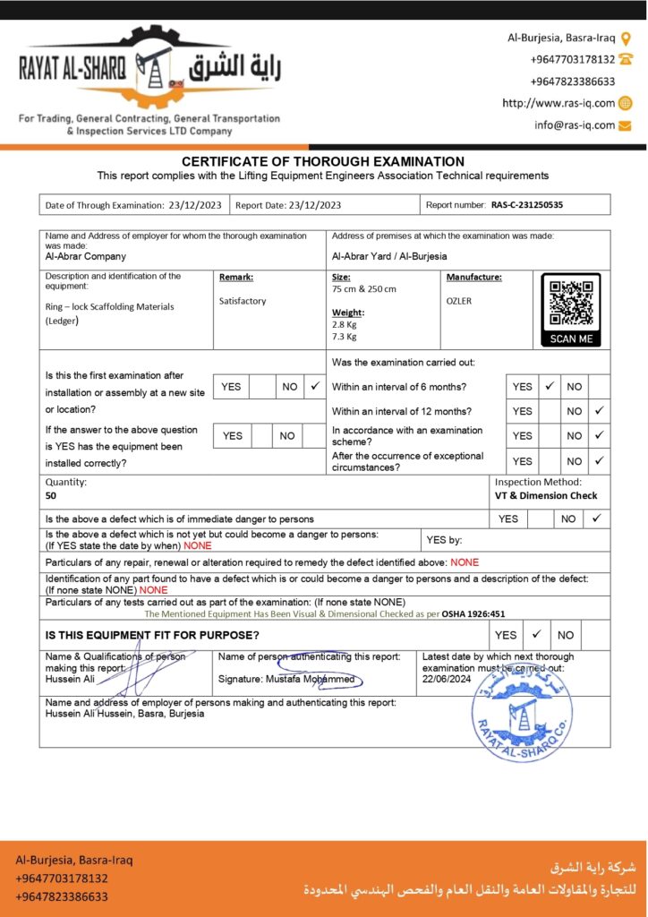 LIFTING INSPECTION