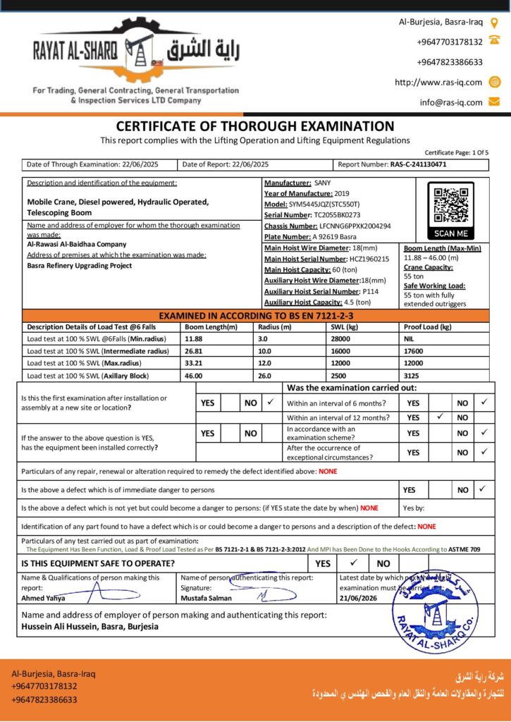 LIFTING INSPECTION