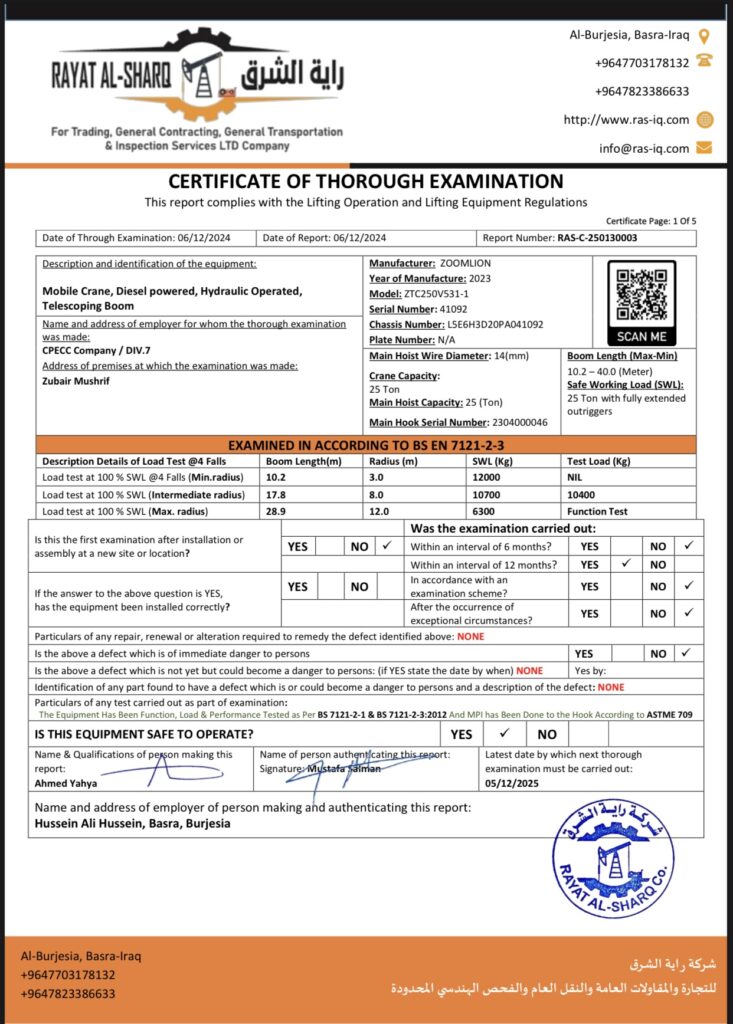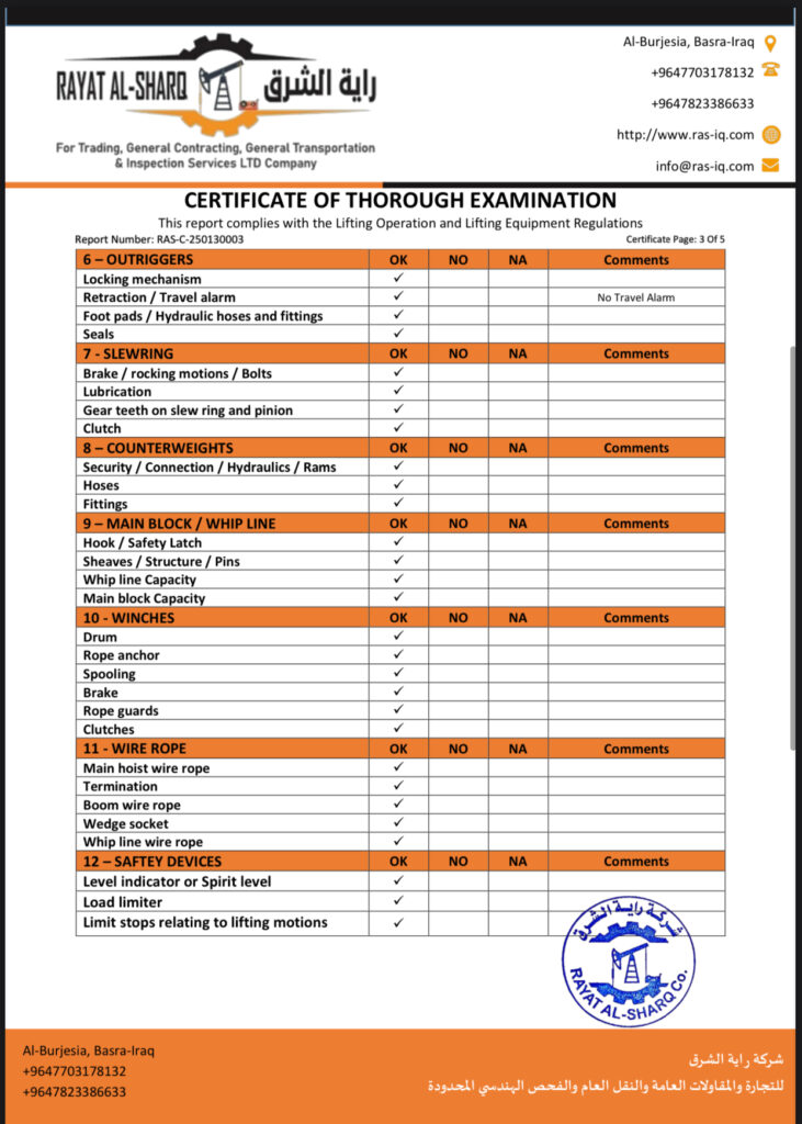 LIFTING INSPECTION