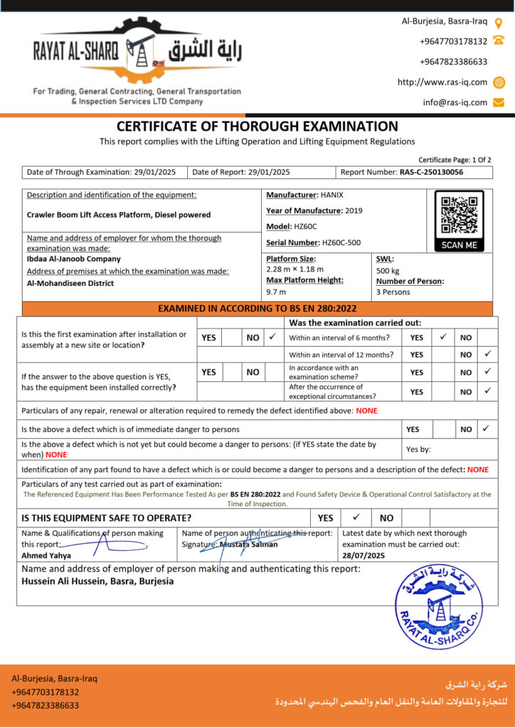 LIFTING INSPECTION