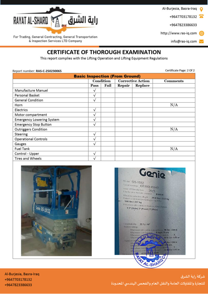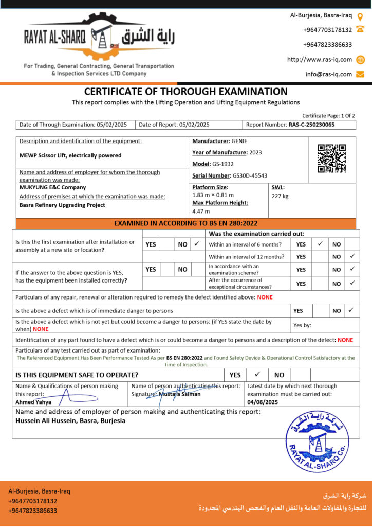 LIFTING INSPECTION