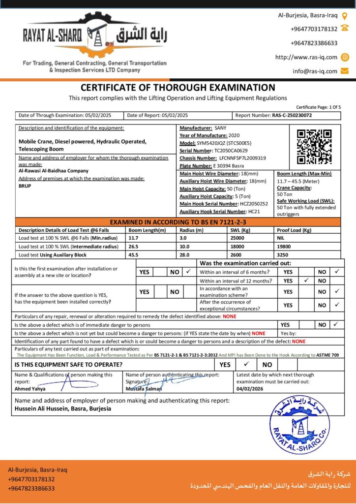 LIFTING INSPECTION