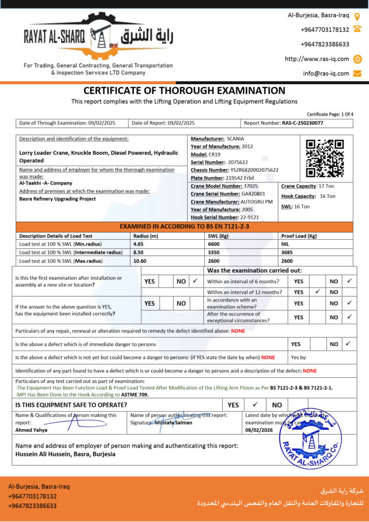LIFTING INSPECTION