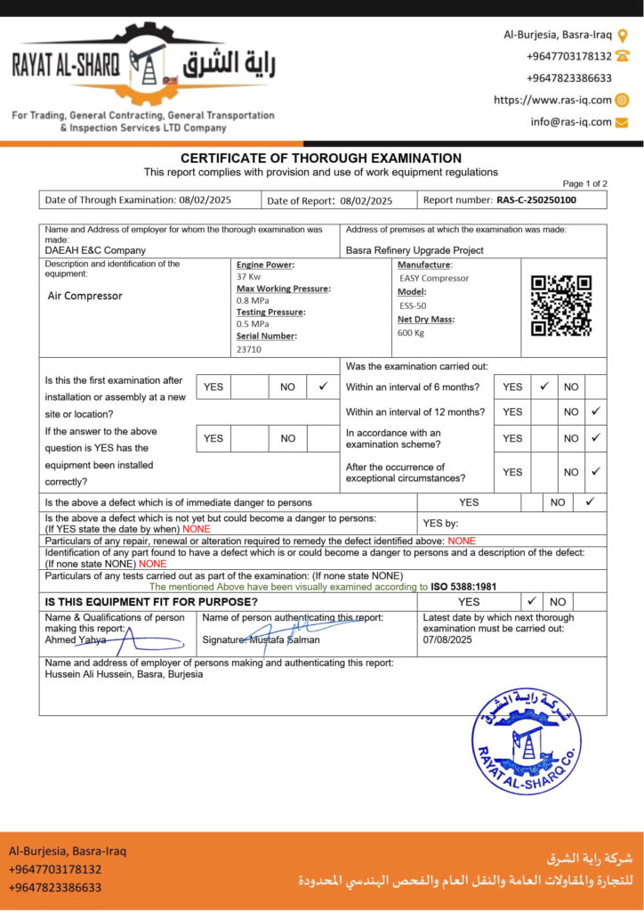 LIFTING INSPECTION