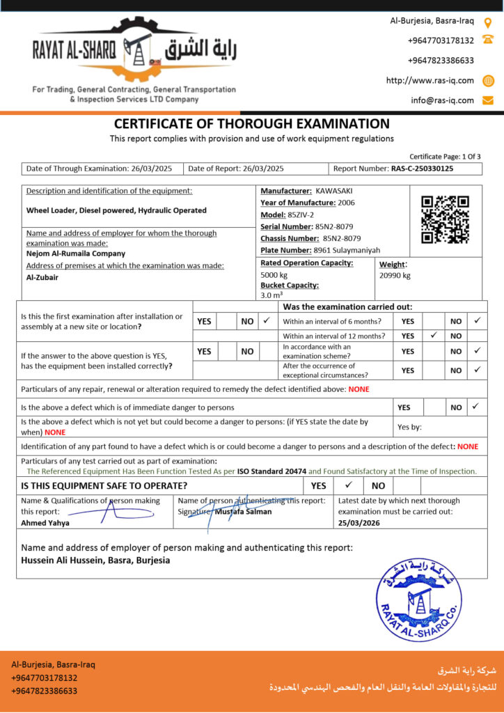 LIFTING INSPECTION