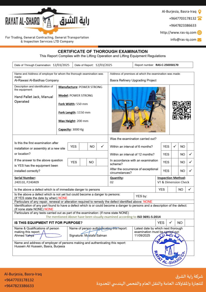 LIFTING INSPECTION