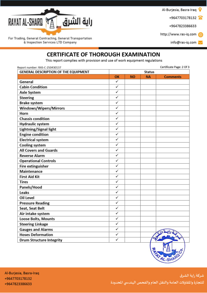 LIFTING INSPECTION