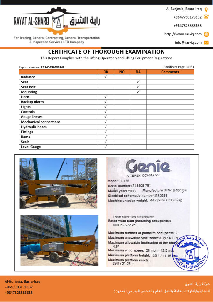 LIFTING INSPECTION