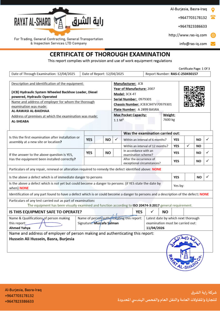 LIFTING INSPECTION