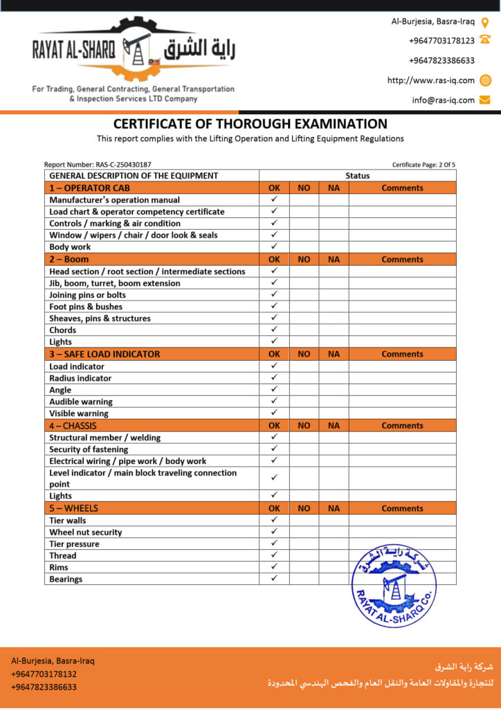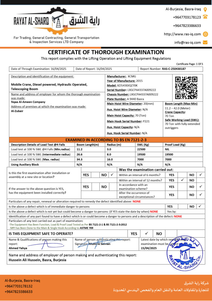 LIFTING INSPECTION
