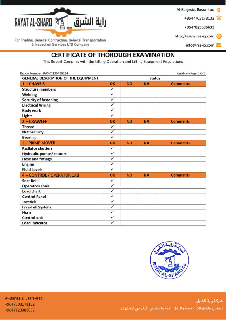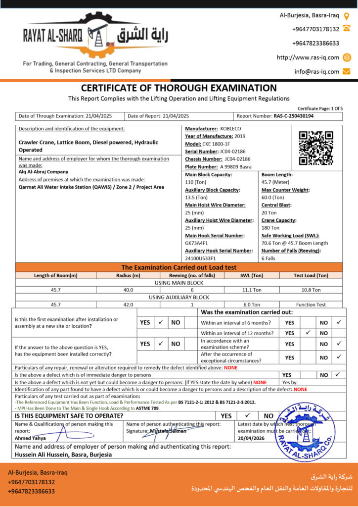 LIFTING INSPECTION