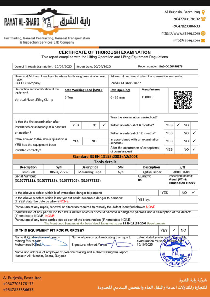 LIFTING INSPECTION