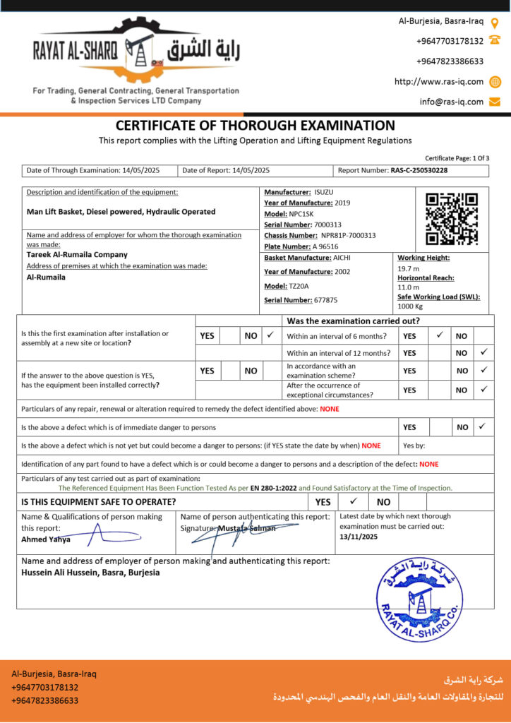 LIFTING INSPECTION