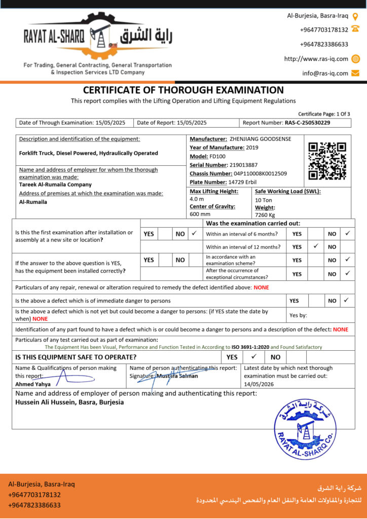 LIFTING INSPECTION