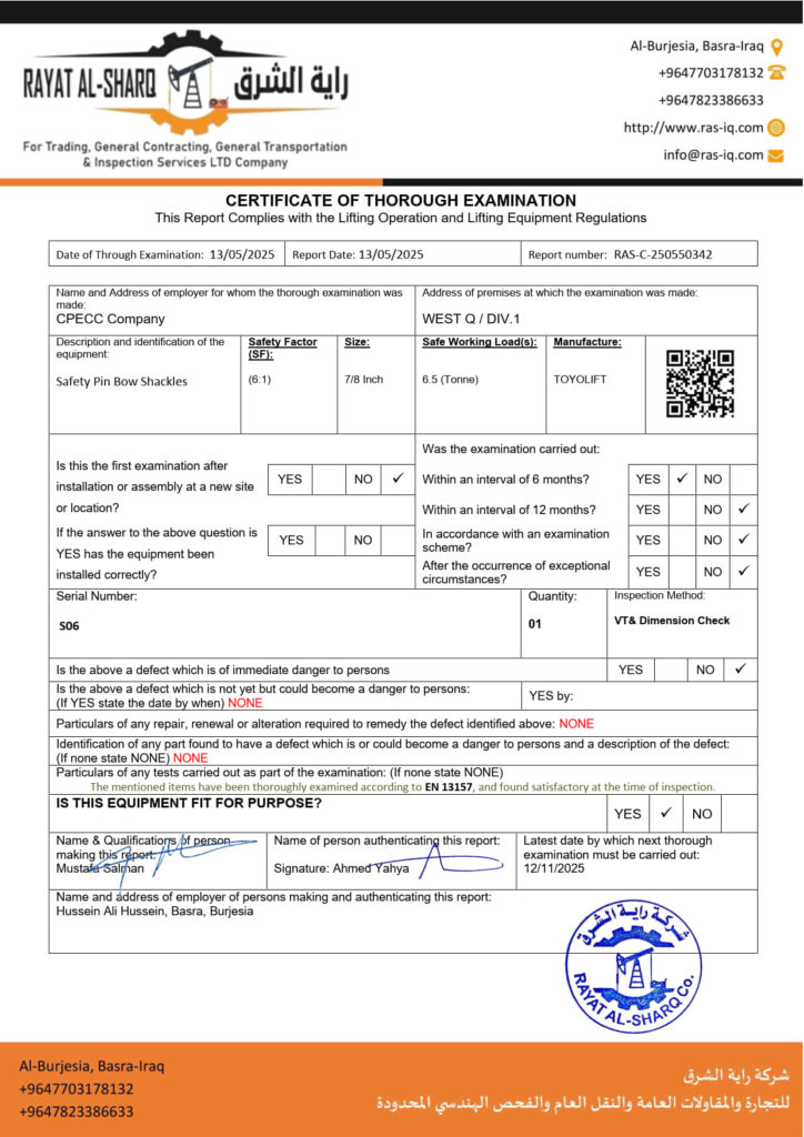 LIFTING INSPECTION