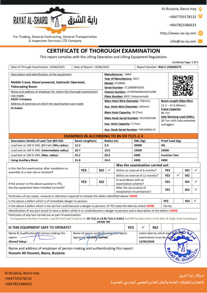 LIFTING INSPECTION