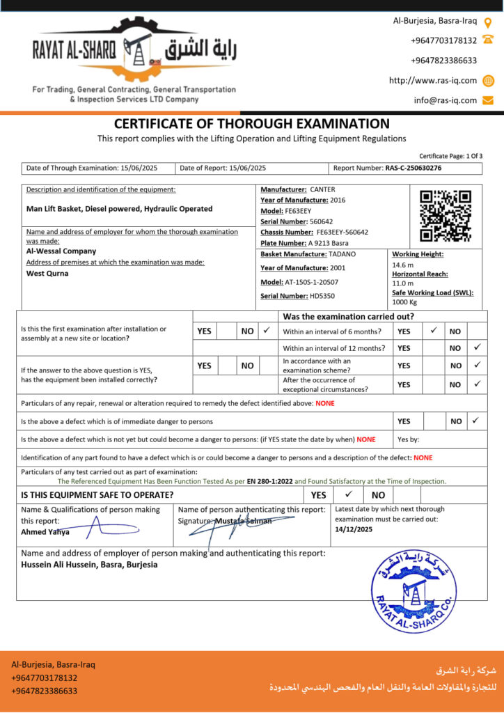 LIFTING INSPECTION