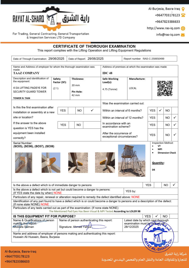 LIFTING INSPECTION