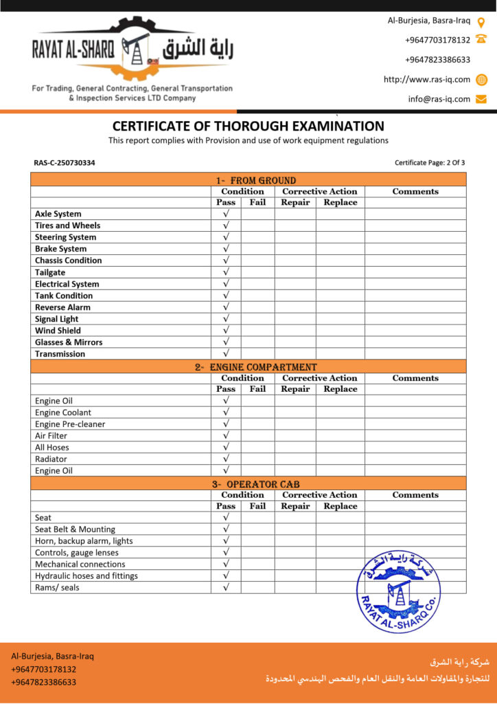 LIFTING INSPECTION