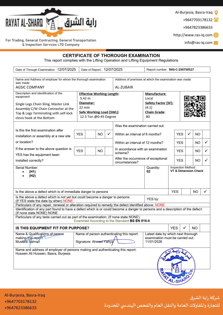 LIFTING INSPECTION