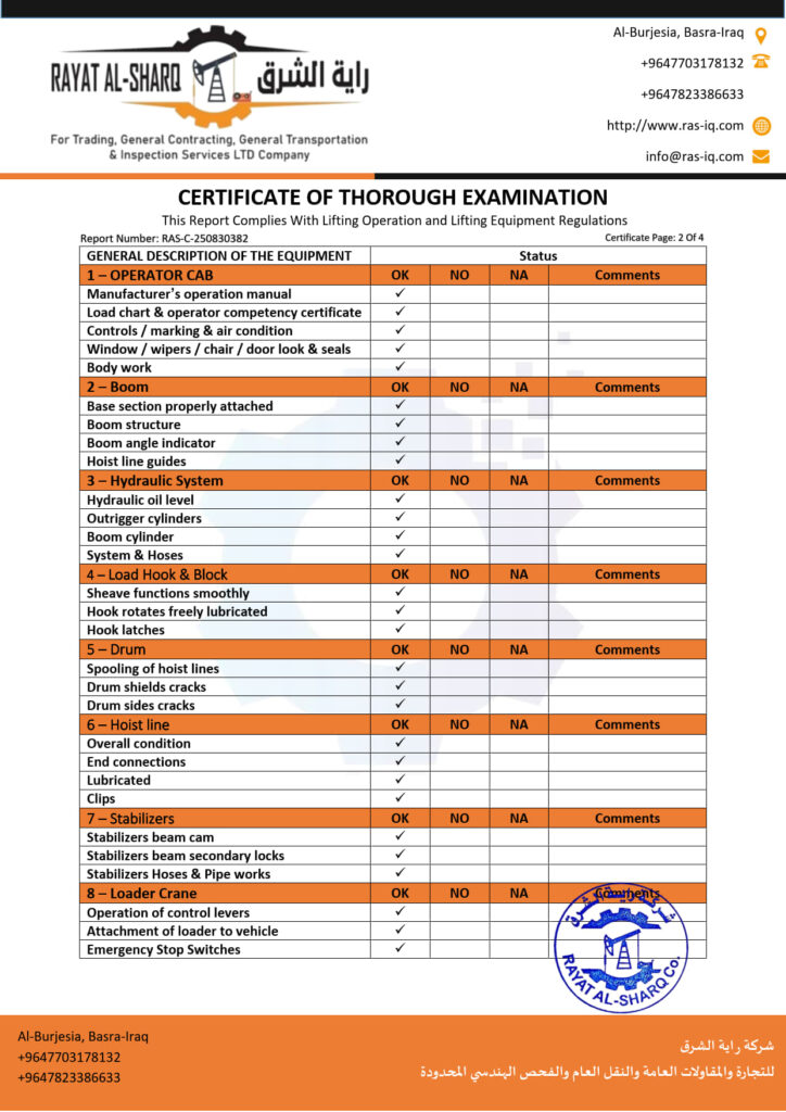 LIFTING INSPECTION