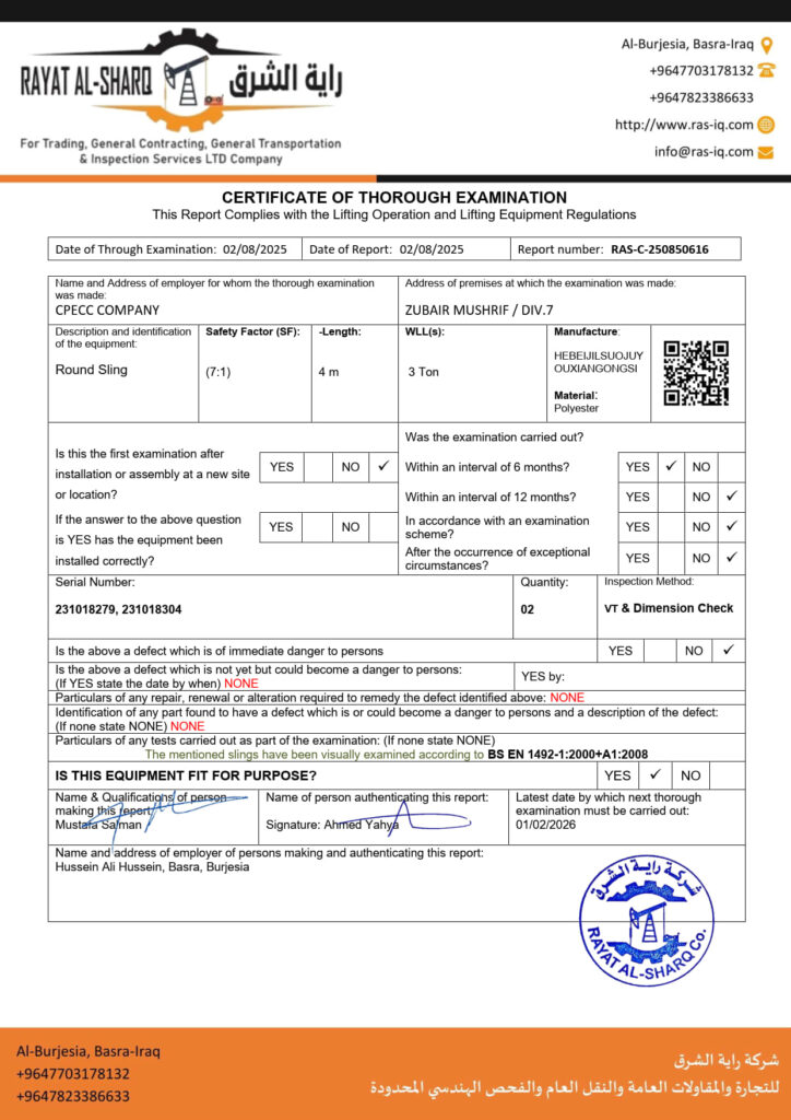 LIFTING INSPECTION